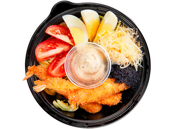 СалатКреветки темпураикраяйцопомидорысыр Пармезансоуссухарики